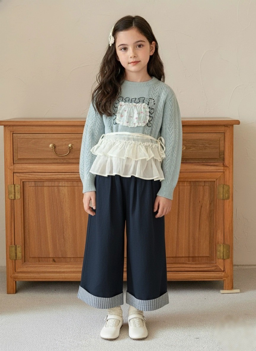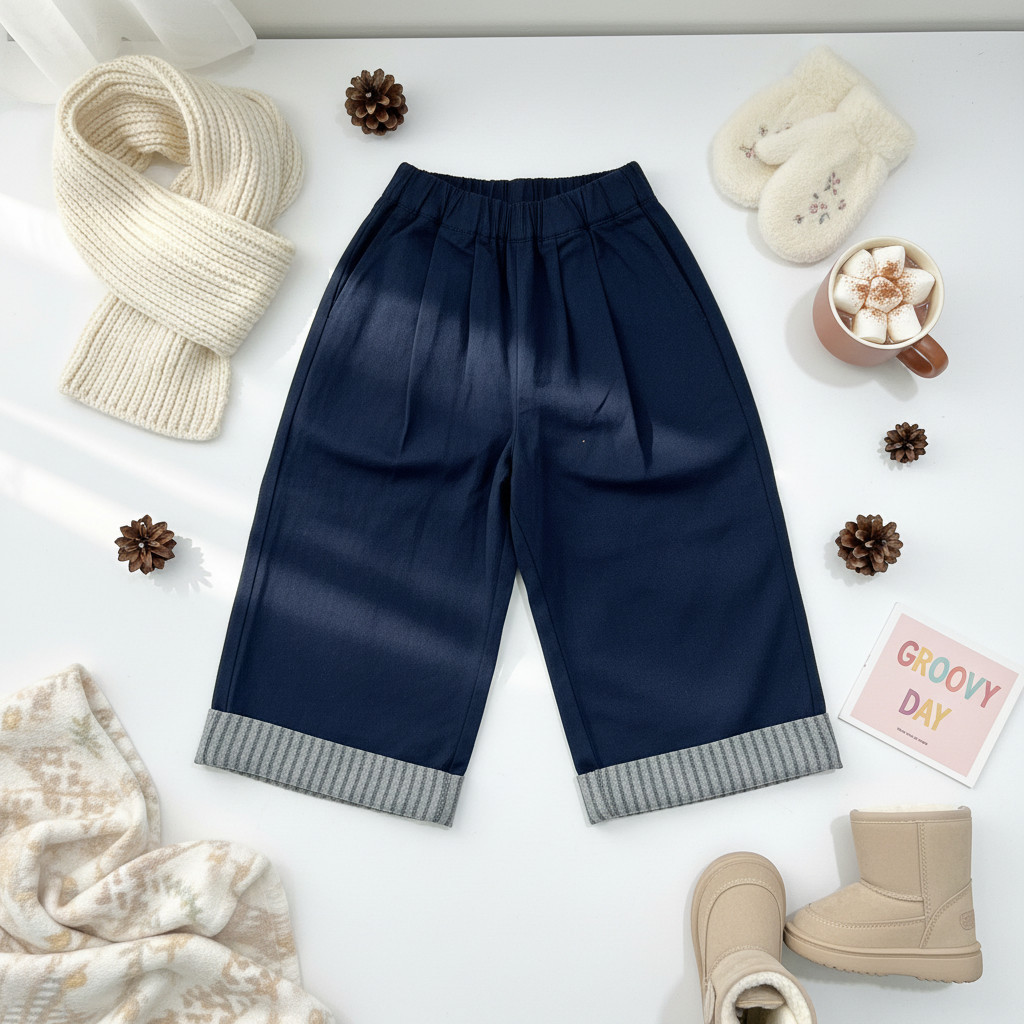 這款寬褲/裙褲採用經典的藏青色,版型寬鬆舒適,男女童都適合穿著。無論是搭配T恤、襯衫或針織衫,都能輕鬆穿出日系雜誌感的文青風格。